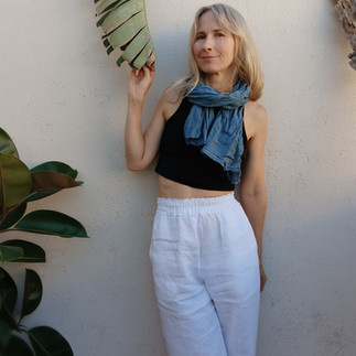 Scarf as a colour pop. One outfit, different colour ramie scarf ROSE
